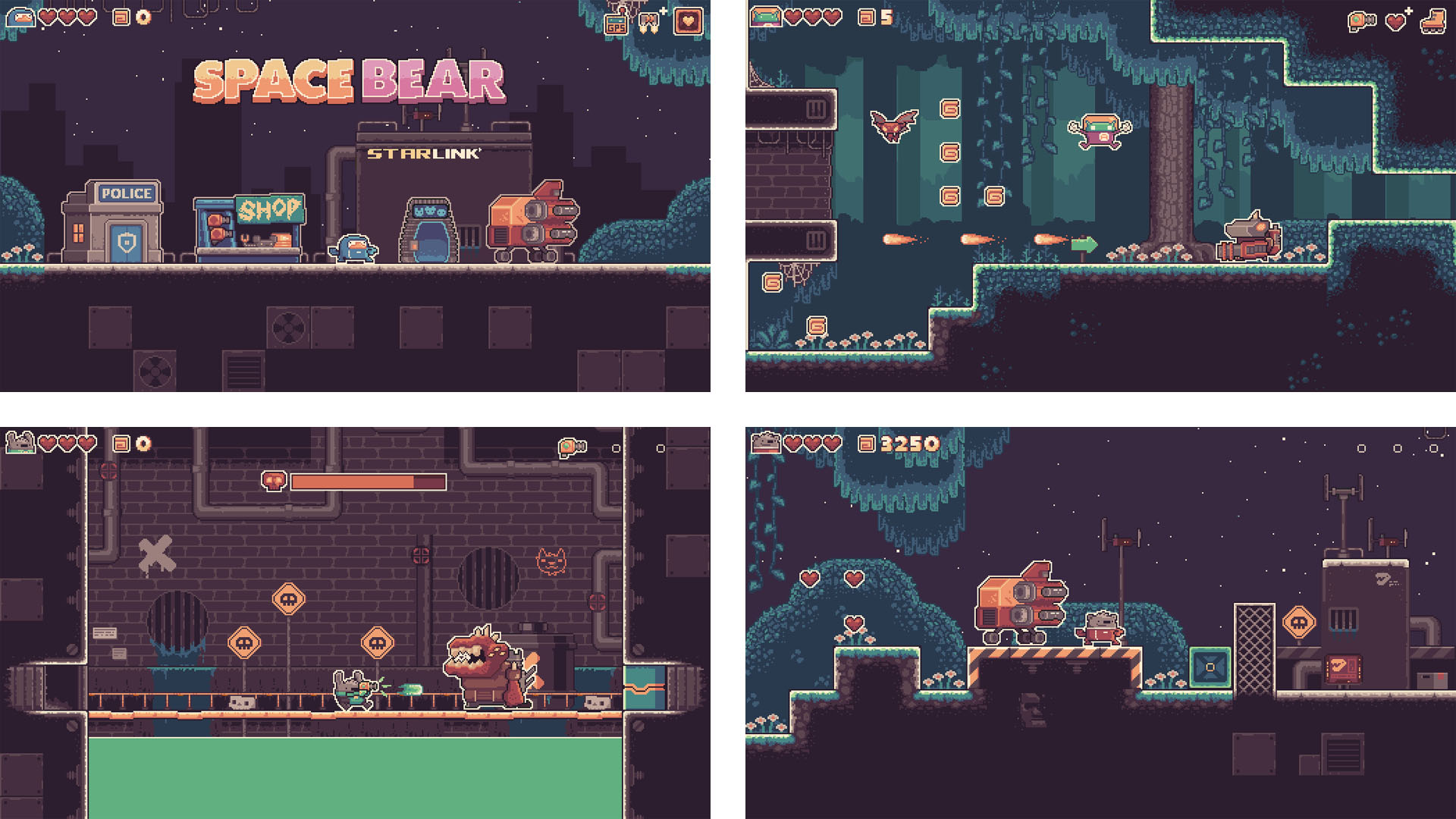 In meiner Anfangszeit als Freelancer entwickelte ich das Spiel Spacebear – ursprünglich als humorvolle Hommage an Flappy Bird, mit einem Bären als Hauptfigur. Im Laufe der Zeit hat sich das Projekt weiterentwickelt und ist mittlerweile ein eigenständiges Jump-'n'-Run-Spiel mit eigener Welt, Story und Mechanik geworden.